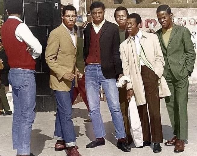 When the picture below popped up on social media, some commented that it showed a bloke called Bubbles and his crew from Brixton. Apparently, it was taken circa 1968/69 at the top of Granville Arcade (now known as Brixton Village), which is located at the junction of Coldharbour Lane and Atlantic Road. I liked the photo, but I couldn’t tell whether this lot were rude boys, skinheads, or neither. Clothes-wise, nothing strays too far from the original skinhead look.