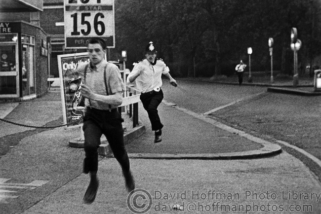 The picture seen here was shot by photographer David Hoffman on Tuesday, 7th July 1981, when the riots reached both Wood Green and Manchester. The skinhead is being chased down the corner of Alfoxton Avenue and West Green Road in Harringay, which is close to Turnpike Lane tube station. Matt Crombieboy spoke to the photographer.