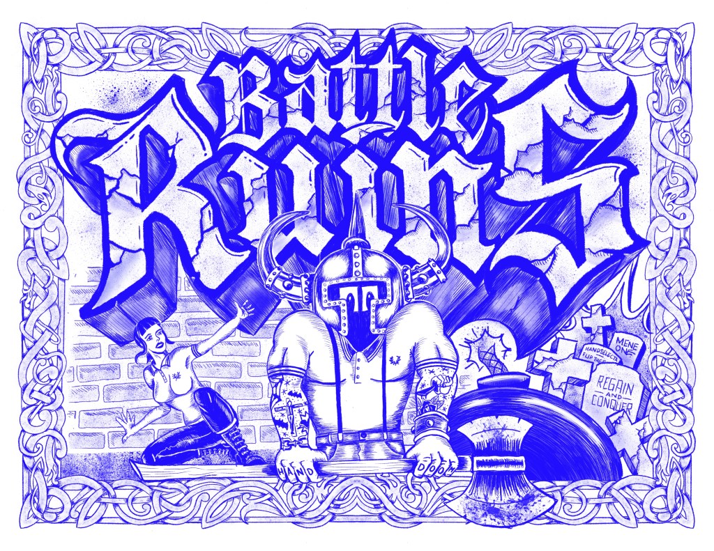 “I’ve done flyers for Oi bands like Oxblood, Bottom of the Barrel. I did the artwork for the Bottom of The Barrel EP that never came out. I’m a curse – I’ve done art for bands and soon after, they break up or the release gets fumbled. NYHC band Bloodbeat (TAK IMOK played drums for them). I’ve done art for hip-hop acts like my boy Ill Bill and his group Non-Phixion, YES 2, and I did the art for the Non-Phixion vs Arsonists video ‘14 years of rap’. I did the cover for Oi! the Black Book and a page in that book for Major Accident. In other issues of the Black Book I did Negative Approach, Rykers, Raw Desk and a Raybeez dedication in the Urban Styles book”.
