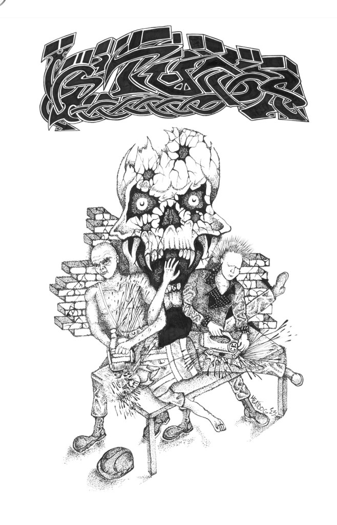 “I’m yelling in Society’s Chain. If you like Breakdown chances are you’ll like that band. We are about to start writing for a 7”. We kinda broke up in 2016 and got back together with a new line up in 2022. I’ve been doing a lot of writing the past couple of years. I’ll slow down here and there but I’ll never stop. “Born to expire, never retire”. I guess besides that I’m tattooing most days and just doing art for bands I like and listen to. Thanks for the talk! It’s been an honour”.