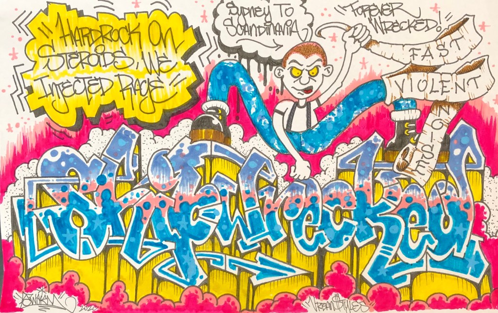 MEATDOG is a native of Sydney, Australia skin and sang for the hard-hitting Oi/hardcore outfit Reckless Aggression and the psych-core stylings of Gutter Gods. His visually striking artwork has graced other bands’ releases and merchandise. Here he talks about getting his start doing graffiti: