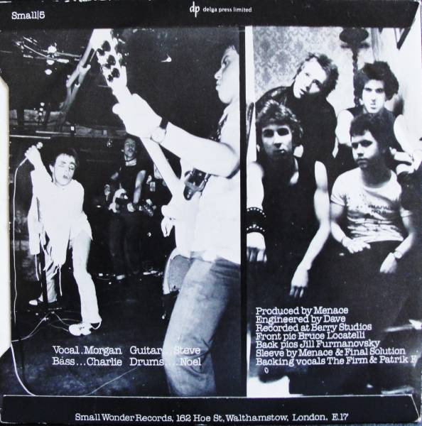 Menace were a classic four man late-seventies punk group. That said, the fact they had an Islington-based Canadian singer was slightly unusual for a London band of the time. Vocalist Morgan Webster was not only a great frontman, with his eye makeup and flamboyant dress he looked way more punk than the rest of Menace. That said, I preferred the real and ordinary dressed-down look sported by the majority of the band, although I can also understand why Paul Marko has opted to use a picture of the band’s singer on the cover of his book. The group created a great racket that was one of the earliest manifestations of what became known as street punk.