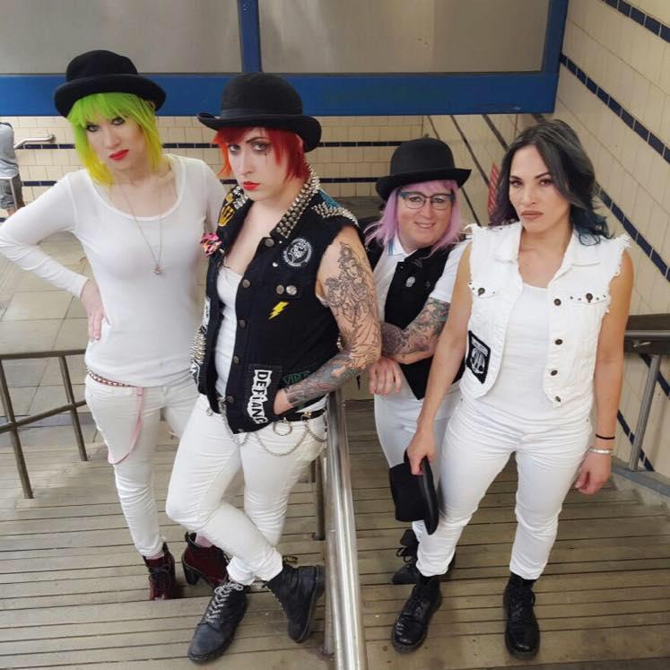 Another issue I had with the book was its gender bias, which ratchets up imbalances on the Oi/skin scene. A few female musicians are mentioned, but only in passing. While she doesn’t get much space, Klasse Kriminale’s long-departed far-right bassist Antonella, also known as Annie Riggs,[6] is the most prominent among these. My favourite Oi band of the past decade is Philadelphia’s all-female act The Droogettes – but they don’t even get a mention, despite Noel Martin of Menace appearing as a guest vocalist on their album Clockwork Girls.