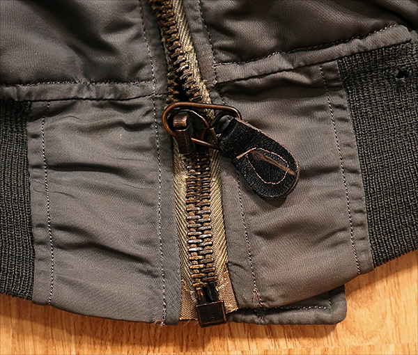 Here’s another one, made in 1959 – a MIL-J 8279 B, the second revision of the MA-1. It came with a wool collar and wool cuffs, wool lining and zippers by Conmar (other jackets in this early period came with Crown zippers):