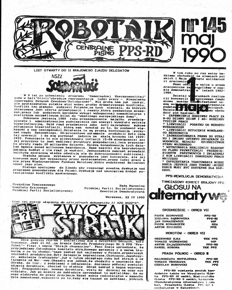 Borowa was a Polish Socialist Party/Revolutionary Democracy activist [PPS-RD, i.e. the majority faction of the left-wing Polish Socialist Party refounded in 1987; name changed to PPS after reunification with the minority faction in 1990 – MC].