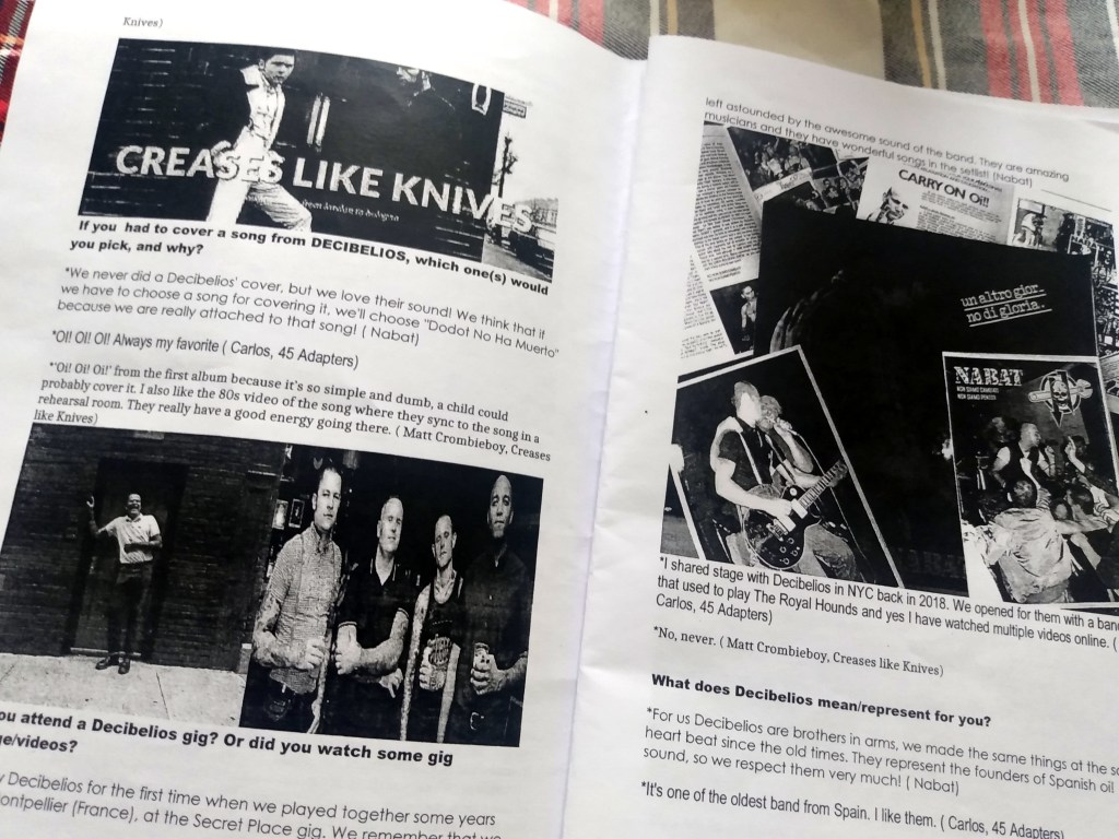 For the latest issue, number 43, he approached the legendary Bologna Oi band Nabat, NYC Oi band 45 Adapters as well as us, asking everyone questions about Decibelios.
