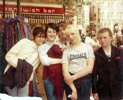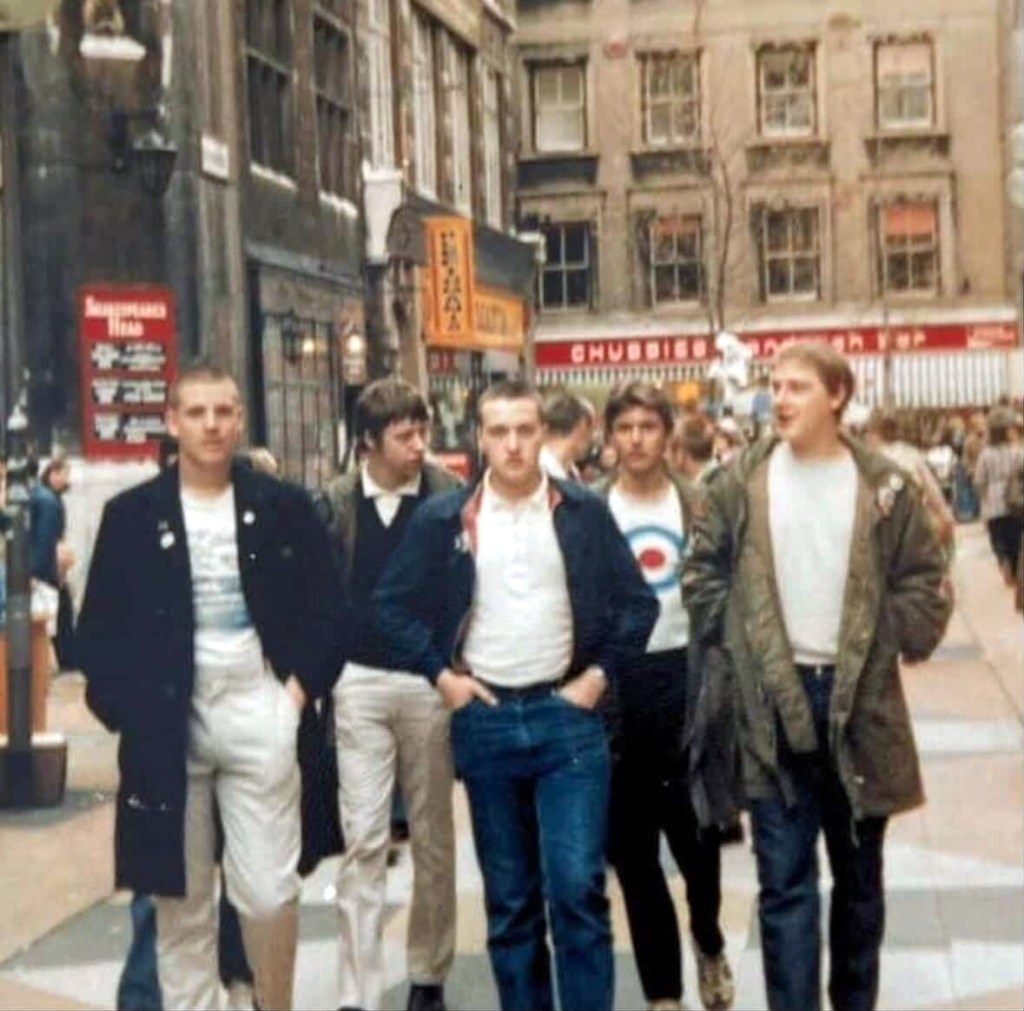 Wycombe skins in Carnaby St circa 1984, Symond first right