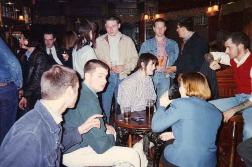 The Blue Posts circa ’92: Sophie (middle) and Rob (right)