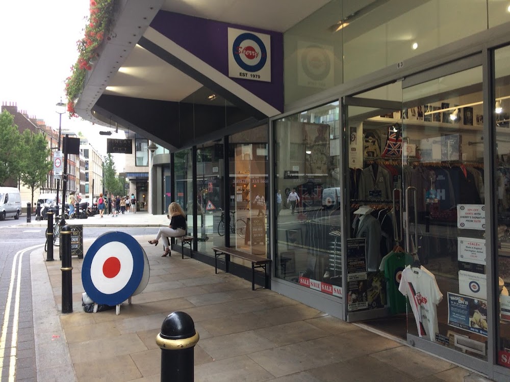 Inspired by The Jam, the release of the film Quadrophenia, and the concurrent mod revival, a similarly-themed shop, Sherry’s,opened its doors in Ganton Street in 1979. Then as now, it sold staples such as three-button suits, parkas and sta-prest trousers, often manufactured exclusively for Sherry’s. Sherry’s button-down shirts were cut like Brutus at a time when you couldn’t get Brutus. Decades later, the shop moved to Broadwick Street and eventually to its current location at 11 Poland Street, all within the wider Carnaby area. Anyone who has visited Carnaby Street in the past few decades will have met Bubbles, the shopkeeper – or at the very least seen her through the glass front of her shop.