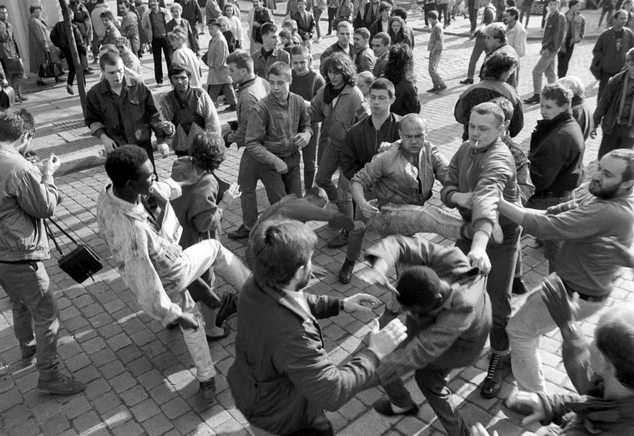 In anti-fascist accounts of the latter half of the 80s, all Polish skinheads are routinely referred to as naziskini [nazi skins]. Yet the Security Service of the Polish state had a somewhat more realistic assessment: in an internal report from 1986, it estimated that there were approximately 200 skinheads in Poland, of which it regarded 30 as “fascists”. By 1987, the overall number remained the same, but the count of “fascists” had increased to 50. This indicates a clear majority of “non-fascist” skins, although things were to change rapidly with Poland’s political transformation in 1989.